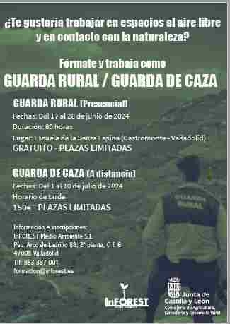 Curso GRATUITO de GUARDA RURAL, subvencionado por la Consejería de Agricultura de la Junta de Castilla y León, presencial del 17 al 28 de junio.